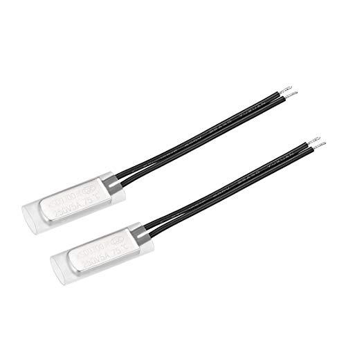 uxcell KSD9700はバイメタル式サーモスタットで、温度75℃で動作するN.Oタイプの温度制御スイッチです。5Aの電流を扱え、メタル製のため耐久性があります。2個セットで提供されています。