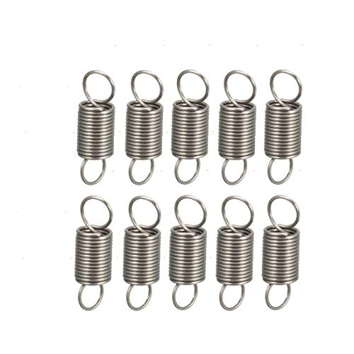 uxcellの圧縮スプリングは、ステンレス鋼製で線径0.3mm、外径3mm、フリー長さ10mmの小型デュアルフックテンションスプリングです。パッケージは10個入りで、耐久性が高く様々な用途に最適です。