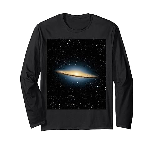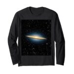 ソンブレロギャラクシーM104をモチーフにした長袖Tシャツ。宇宙や天文学が好きな方に最適な一品。星の美しさを楽しみつつ、快適に着用できます。