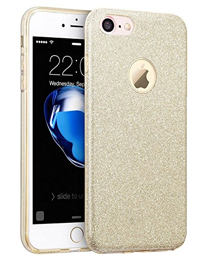 ImikokoのiPhone 7ケースは、ラグジュアリーなデザインで、クリスタルラインストーンとグリッターが輝くハイブリッドハードケースです。ゴールドカラーで、高級感あふれる保護力を持っています。