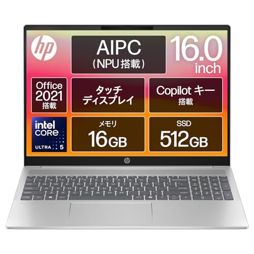 HP ノートパソコン Pavilion 16-af 16.0インチタッチディスプレイ IPS液晶 Intel Core Ultra 5 16GBメモリ 512GB SSD Microsoft Office Home & Business 2021 Windows11 Home ナチュラルシルバー Copilotキー搭載 AIPC (型番:A1KX3PA-AAAB)の製品情報