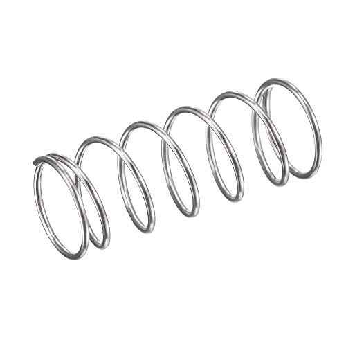 uxcellの圧縮バネは、外径10mm、線径0.7mm、圧縮長さ15mmで、負荷は11.8Nのステンレス製コイルばねです。シルバー色で、10個入りです。
