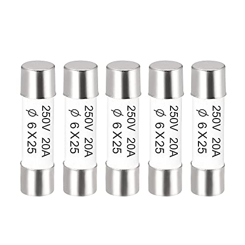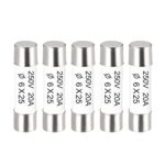 uxcellセラミックカートリッジヒューズ20A 250V 6x25mmファストブロー5個入り。置換用で、省エネランプやバラストに最適なデザインです。