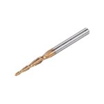 uxcellのテーパーボールノーズエンドミルは、TiSiNコーティングの固体超硬素材で、2フルートのスパイラル設計。半径0.75mm、直径1.5mm、4mmシャンク、長さ50mm、角度7度。