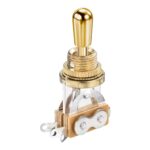 uxcellエレクトリックギターパーツ交換用の3ウェイショートストレートギタートグルスイッチです。金色仕上げで、金色の先端ノブキャップ付き。ギターのカスタマイズに最適。