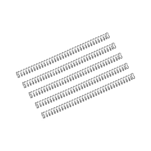 uxcellの圧縮ばねは、304ステンレス鋼製でODが2mm、ワイヤサイズは0.3mm、全高は30mmです。シルバートーンで5個入りです。