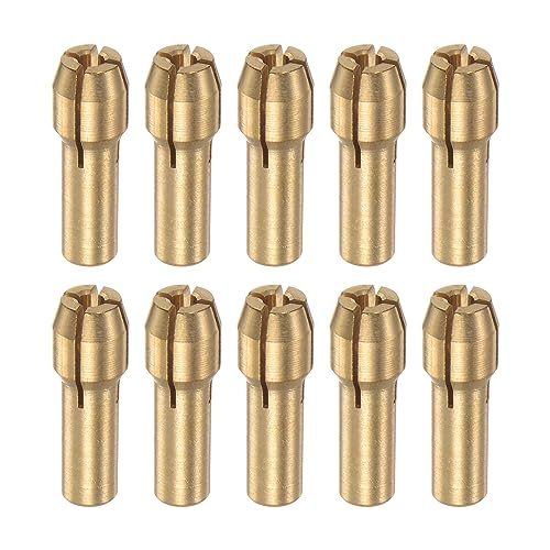 uxcellの真鍮製コレットは、4.3mmシャンクのミニ電動グラインダー用のドリルチャックビット。1.8mmサイズが10個セットで、クイックチェンジ機能を搭載。