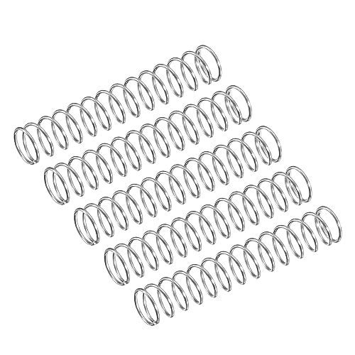 uxcellの圧縮バネは、304ステンレス鋼製で外径7mm、ワイヤーサイズ0.5mm、自由長さ35mmのシルバートーンです。5個入り。