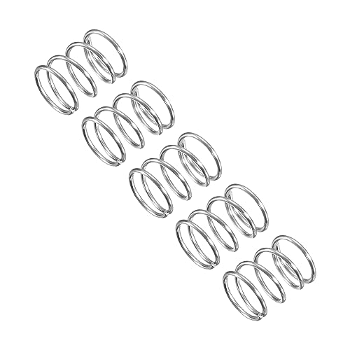 uxcellの圧縮バネは、304ステンレス鋼で作られ、外径7mm、ワイヤーサイズ0.6mm、自由長さ10mmのシルバートーン仕上げ。5個セットで、耐久性と高いパフォーマンスを提供します。