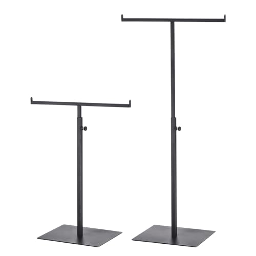 uxcell 財布ディスプレイスタンド T字型の金属製ハンドバッグラック。調節可能でダブルフックホルダー付き、ネックレスオーガナイザーとしても活用可能。ホームブティックストアに最適なブラック仕様、2個セット。