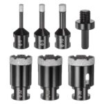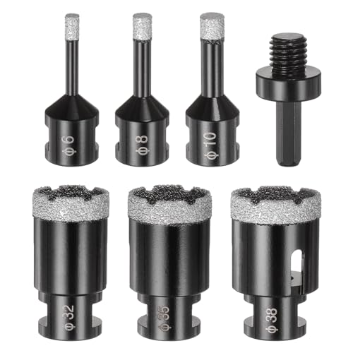uxcellの6個セットダイヤモンドコアドリルビットは、6/8/10/32/35/38mmサイズで、タイル、磁器、セラミック、大理石、石材に最適です。耐久性があり、スムーズな穴あけを実現します。