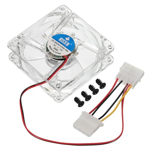 uxcellクリアコンピュータケースファンは、1800RPMの80mmサイズ。4ピン接続、ブルーLED搭載で静音性能。12V対応、デスクトップ冷却用。ネジ4個付き。