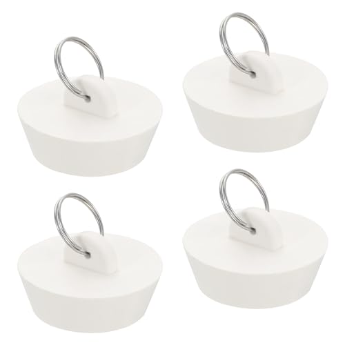 uxcellの吊りリング付きゴム製排水栓4個セットは、1-1/2”から1-3/4”に適合。バスタブやキッチン、お風呂用として使用できるホワイトのシンクストッパーです。