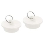 uxcellの吊りリング付きゴム製排水栓は、1-1/2″から1-5/8″に適合し、浴槽やキッチン、バスルーム用のシンクストッパーです。白色で、2個セットで提供されています。