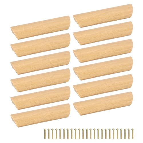 uxcellの木製引き出し取っ手は、96mm間隔のブナ材製で、キッチンキャビネットやドレッサーに最適。12個セットで、木の色合いが家具を引き立てます。