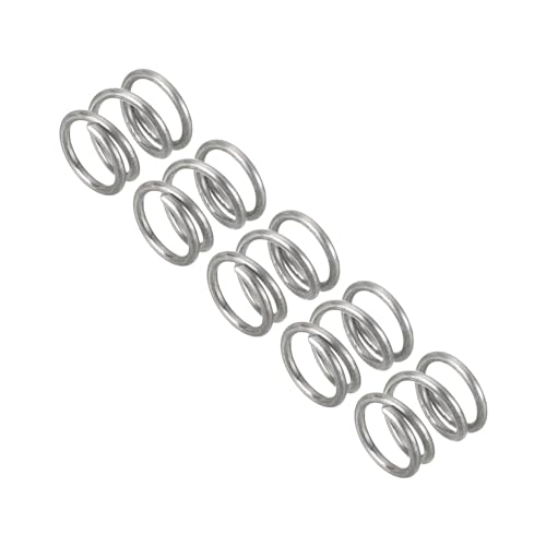 uxcellの圧縮バネは、線径0.6mm、外径5mm、自由長5mmで、304ステンレス鋼製です。修理、実験、産業機械、電化製品、モーター、家具用に最適で、5個入りです。