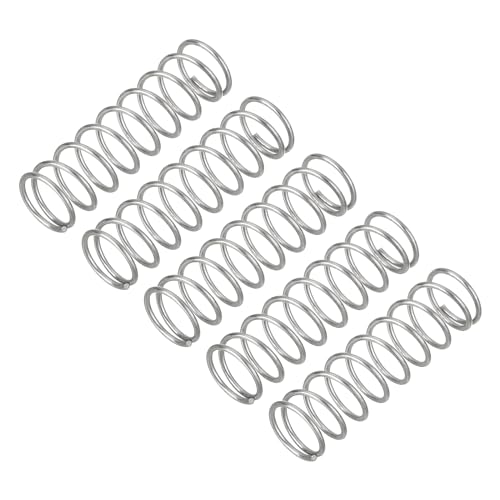uxcellのバネは、圧縮用のコイルスプリングで、線径0.9mm、外径10mm、自由長35mmの304ステンレス鋼製です。修理や実験、産業機械、電子機器、モーター、家具に適しています。5個セット。
