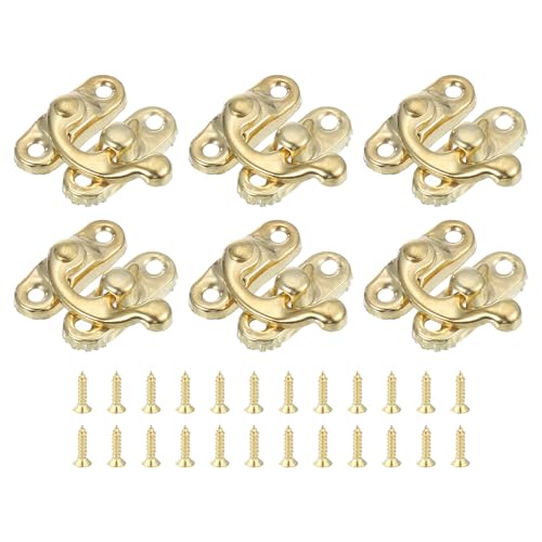 uxcell 6個のビンテージロッククラ スプ 23 x 26mmミニスイング アームクラ スプラッチ左ハッチフックハスプ 宝石ボックススーツケース工具箱木製ケース用のネジ付き 金色の高価買取ITEM