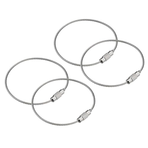 uxcellの4パックケーブルキーリングは、6インチ(155mm)のワイヤーキーチェーンです。ツイストストラップやランヤード、荷物タグとして使え、シルバーのデザインが特徴です。