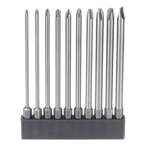 uxcellのドライバービットセットは、PH0-PH3の10本組で、インパクトドライバー用。磁気S2鋼製、フラットヘッド4.3″(110mm)を含む。電動工具に最適。