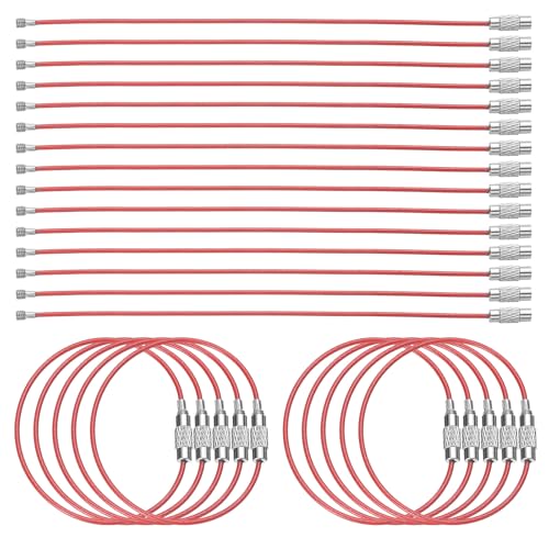 uxcellの25個入りワイヤーキーチェーンは、6インチのプラスチックコーティングステンレススチール製で、1.5mmの径を持つ赤いループリングです。