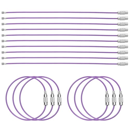 uxcellの16個入りワイヤーキーチェーンは、6インチのプラスチックコーティング付きで、1.5mmのステンレススチール製。紫色のループリングは耐久性があり、便利です。