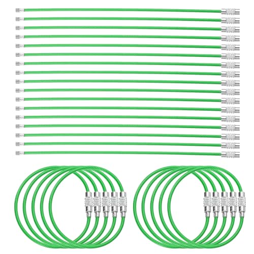 uxcellの50個入りワイヤーキーチェーンケーブルは、6インチのプラスチックコーティングされた2mmステンレススチール製。緑色のループリングが特徴で、耐久性と使いやすさを兼ね備えています。