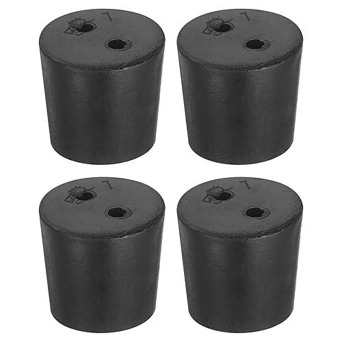 uxcellのゴム栓は、2穴付きシリコン製で上径27mm、下径23mm、高さ25mm。耐高温・耐摩耗、無臭で、試験管やフラスコなどのストッパーに最適。4個セットで研究所や産業用途に対応。