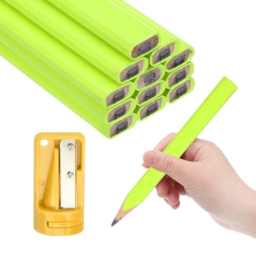 uxcellの建築用鉛筆(12本セット)は専用鉛筆削り付きで、八角形デザイン。大工や職人向けの黒芯カーペンターペンシルで、木材や石膏ボードの墨付けに最適です。