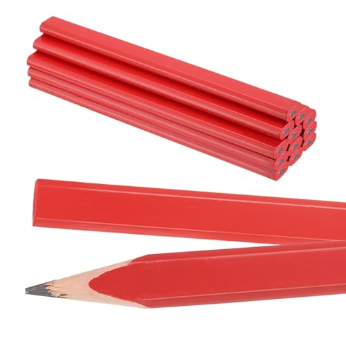 uxcellの12本入り八角形建築用鉛筆。黒芯で、木材や石膏ボードなどのマーキングに最適。大工や職人向け、耐久性のあるデザイン。