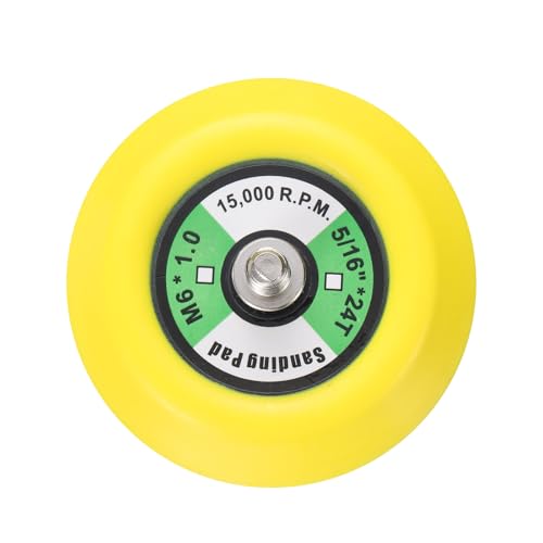 uxcellの3インチフックアンドループバッキングサンディングパッドは、ダイヤモンドサンディング仕上げ研磨に適しており、5/16インチの24スレッドで利用可能なイエローと黒の1個セットです。