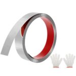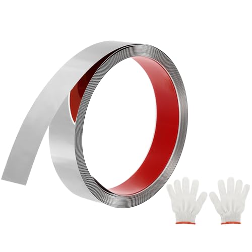 uxcellの16.4ft x 1.18インチのピールアンドスティック自己粘着ステンレススチールミラートリムです。床やキャビネット、タイルのエッジに適しています。グローブとカード付き。