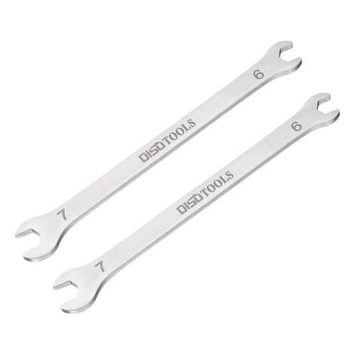 uxcellの薄型スパナセットは、6mmと7mmの両口デザインで、ショートタイプの板スパナです。薄型で両開きのため、狭いスペースでも使いやすく、修理や作業に最適です。2本入り。