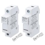 uxcellのソーラーヒューズホルダーは、DC 1000V 25A対応。2本のヒューズコア付きで、シングルポール設計。DINレールにマウント可能で、家庭用回路や太陽光発電所向けです。