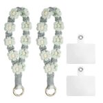 uxcellのライト緑色の携帯電話リストストラップは、テザータブ付きで、スマートフォン用の手作りブレスレット。女性や少女に最適なアンチロス携帯電話チェーンです。