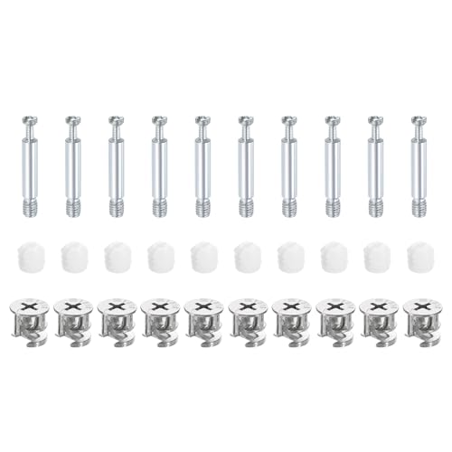 uxcellの10セット15x14mm家具用カムロックフィッティング。5.8x40mmダボファスナー付きで、キャビネット、椅子、引き出しなどの接続に最適。
