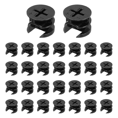 uxcellの家具用カムロックファスナーは、15 x 12mmサイズで、30個入り。キャビネットや引き出し、ワードローブの接続に最適なブラックのロックナットです。