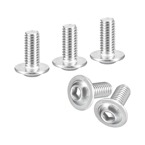 uxcellのフランジ付きボタンヘッドソケットキャップスクリュー。M6x14mmサイズ、304ステンレス鋼製。全ねじマシンスクリュー25個入り、家具取り付けに最適。
