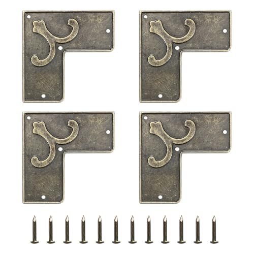 uxcellのヴィンテージフラットコーナーブラケットは、亜鉛合金製で2.1″ x 2.1″のサイズ。家具やギフトボックスの保護に最適。取り付け用ネジ付き、装飾的なブロンズ仕上げ。