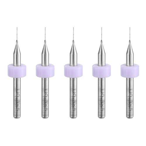 uxcellのPCBドリルビットは0.3mmのタングステンカーバイド製で、CNC彫刻やジュエリー制作に適しています。1/8インチシャンクの5個セットです。