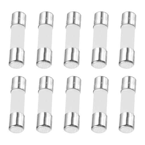 uxcellの10個入り5x20mmセラミックヒューズは250Vの遅延タイプで、T2.5A仕様。LCDテレビなど電子機器に最適なミニチュアヒューズです。