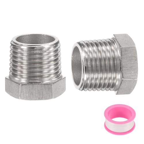 uxcellの304ステンレス鋼レデューサーヘックスブッシングは、G1/2″オスからG3/8″メスネジに対応し、PTFEテープ付きで配管や空圧システムに最適です。