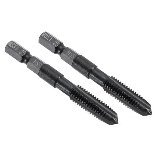uxcellのM8 x 1.25ストレートフルートスレッドタップは、高速鋼6542製で、1/4インチの六角シャンクを備えた二個セットの工具です。精密なねじ切りが可能です。