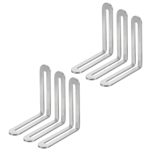 uxcellの6個セットL字型棚受けは、サイズ8cmでスロット付き、調節可能。ステンレス製で耐久性が高く、家具の棚固定や補強に最適。シルバーで美しいデザイン。