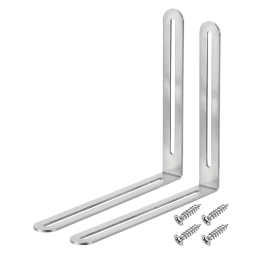 uxcellのL字型棚受け(20cm)は、スロット付きで調節可能。2個セットのステンレス製補強金具により、家具や棚の固定に最適。シルバーのデザインで、耐久性も抜群です。