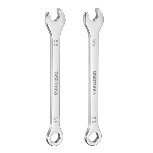 uxcellの薄型コンビネーションレンチは5.5mmサイズで、オフセット6ポイントエンドと15°角度オープンエンドが特徴。30Cr13ステンレス鋼製で、耐久性が高く、車の修理に最適なミニスパナです。