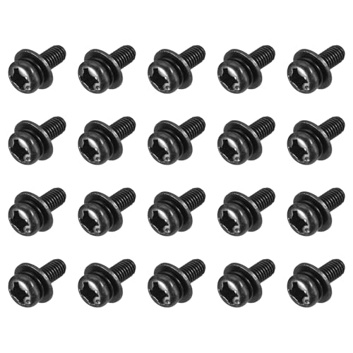 uxcellのパンヘッド機械ネジM3 x 8mmは、炭素鋼製で十字穴タイプ。スプリングワッシャー付きで、家具や自動車、産業機械に最適。20個入り。
