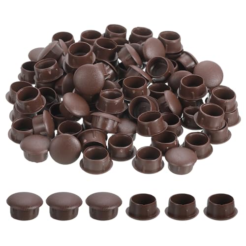 uxcellの125個プラスチックホールプラグ。サイズは11/16″ x 3/8″で、14mmラウンドホール用。ダーク茶色、キャビネットや棚に最適。