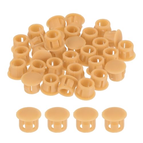 uxcellの8mmオレンジ色プラスチックホールプラグ32個セット。フラッシュタイプで家具やキャビネットのロックホールに最適。エンドキャップ挿入用。