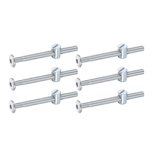 uxcellのM6x70mmヘックスソケットボルト6個セット。二段ベッドや家具に最適なスロット付きヘッドバケットナット。耐久性のあるシルバー仕上げ。